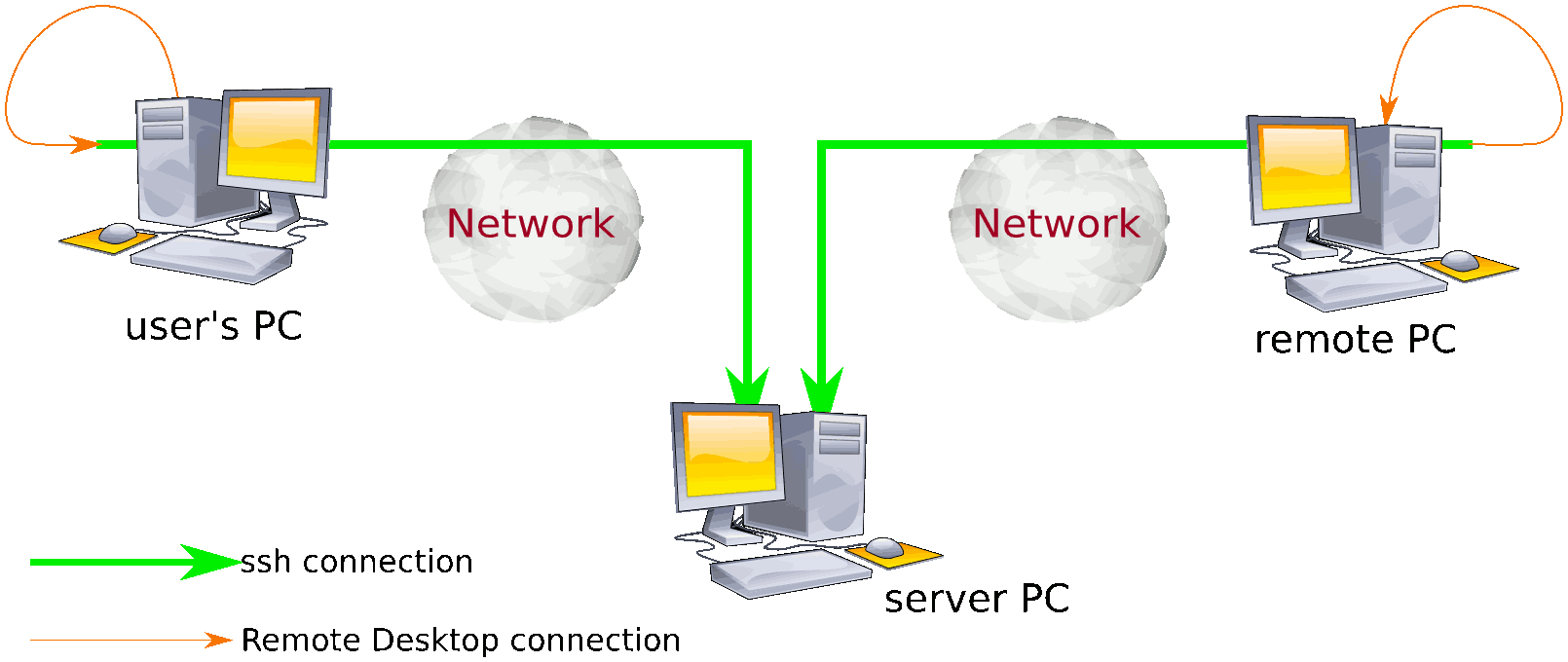 The server computer, which forwards incoming tunnelled remote desktop connections, must run an ssh server. Most commonly this will be a verion of OpenSSH, either in its native form on an OpenBSD system, or ported to either Linux or Windows. The following configuration has been tested on a Linux system but should work the same on other operating systems.